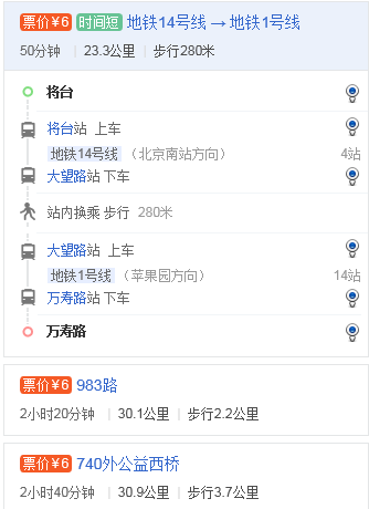 將臺路到海淀萬壽路23.3公里,坐地鐵14號線4站,到大望路站轉(zhuǎn)地鐵一號線14站到達。具體位置和線路如圖所示。